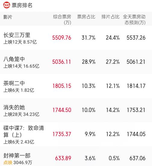 《八角笼中》紧随其后,票房已破16亿,最终剑指20亿;《长安三万里》终于为追光正名,在片长逆天的情况下,依然凭8.2分的口碑突破8亿,10亿已不在话下。
