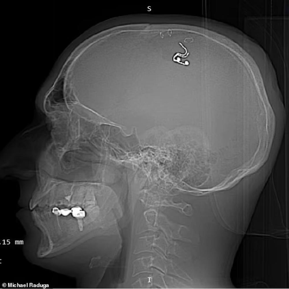 迈克尔·拉杜加大脑中的芯片(图源:每日邮报)