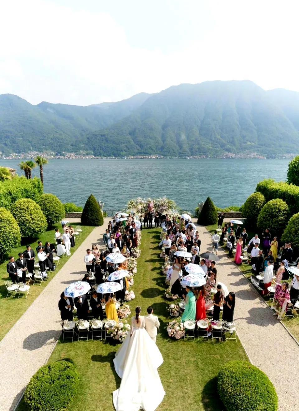 今年是我们结婚20周年,在你喜欢的科莫湖补办我们的婚礼,并邀请到各位亲友到场见证、庆祝与相聚。感谢线上线下各位朋友的祝福,我们都收到了。辛苦老婆未来继续管管我”。