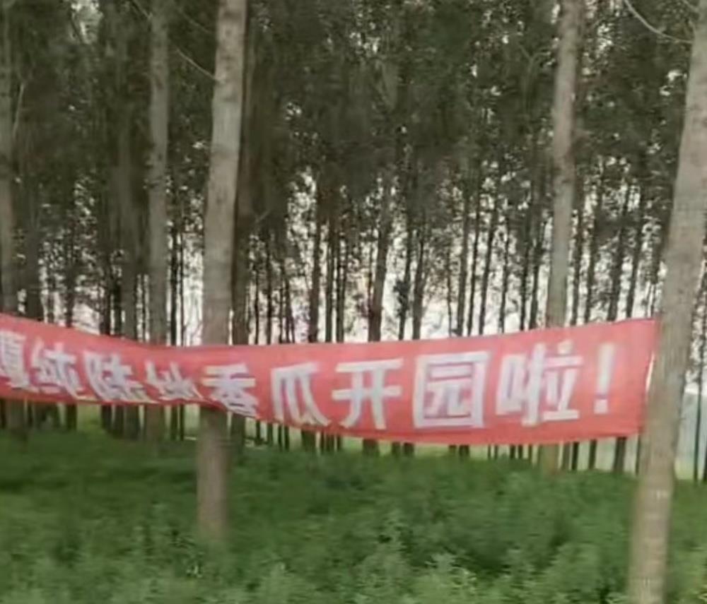 根据网传视频显示,网友镜头拍向一手拿着被撕破的广告旗,另一手持手机录像的身着城管制服的工作人员,大声询问道,“我在自己家的地里挂横幅不行吗?”随后镜头转向后方,林木间挂着“XXX陆地香瓜开园啦!”字样横幅。