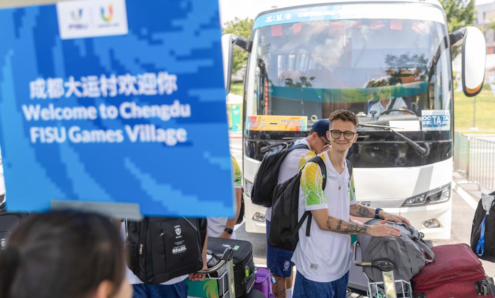 7月22日,巴西代表团成员抵达成都大运村。当日,成都第31届世界大学生夏季运动会运动员村正式开村。新华社记者 黄伟 摄