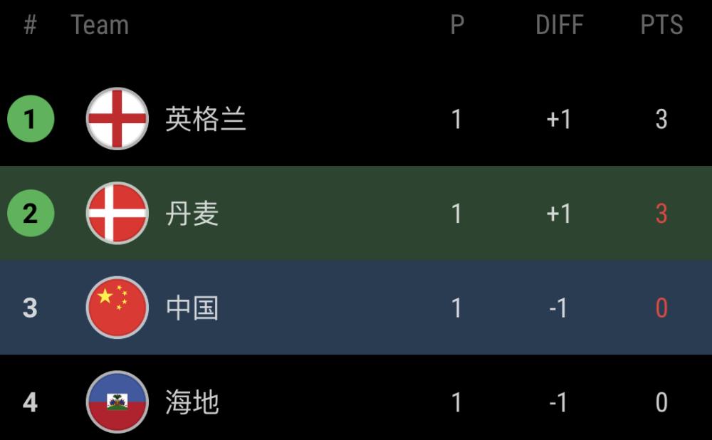 此役失利后,中国女足积0分,与海地队并列垫底。英格兰、丹麦积3分位列榜首。