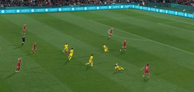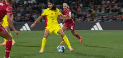 第40分钟,女足前场左路任意球开到禁区,队友头球摆渡,张琳艳差一点就获得了绝佳的射门机会。