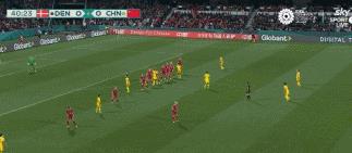 第42分钟,丹麦的绝佳反击机会,张睿回放并且在关键位置头球化解险情。