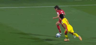 第61分钟,张琳艳超车后被拉拽倒地,裁判离谱吹罚丹麦队任意球。
