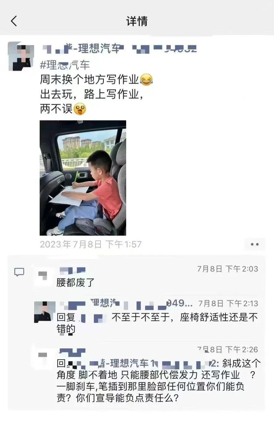 Tech星球7月22日消息,近日,一张疑似理想汽车销售发文宣传周末带娃出去玩,路上可以让孩子在车上写作业,随后被网友怒怼的截图在网上流传。