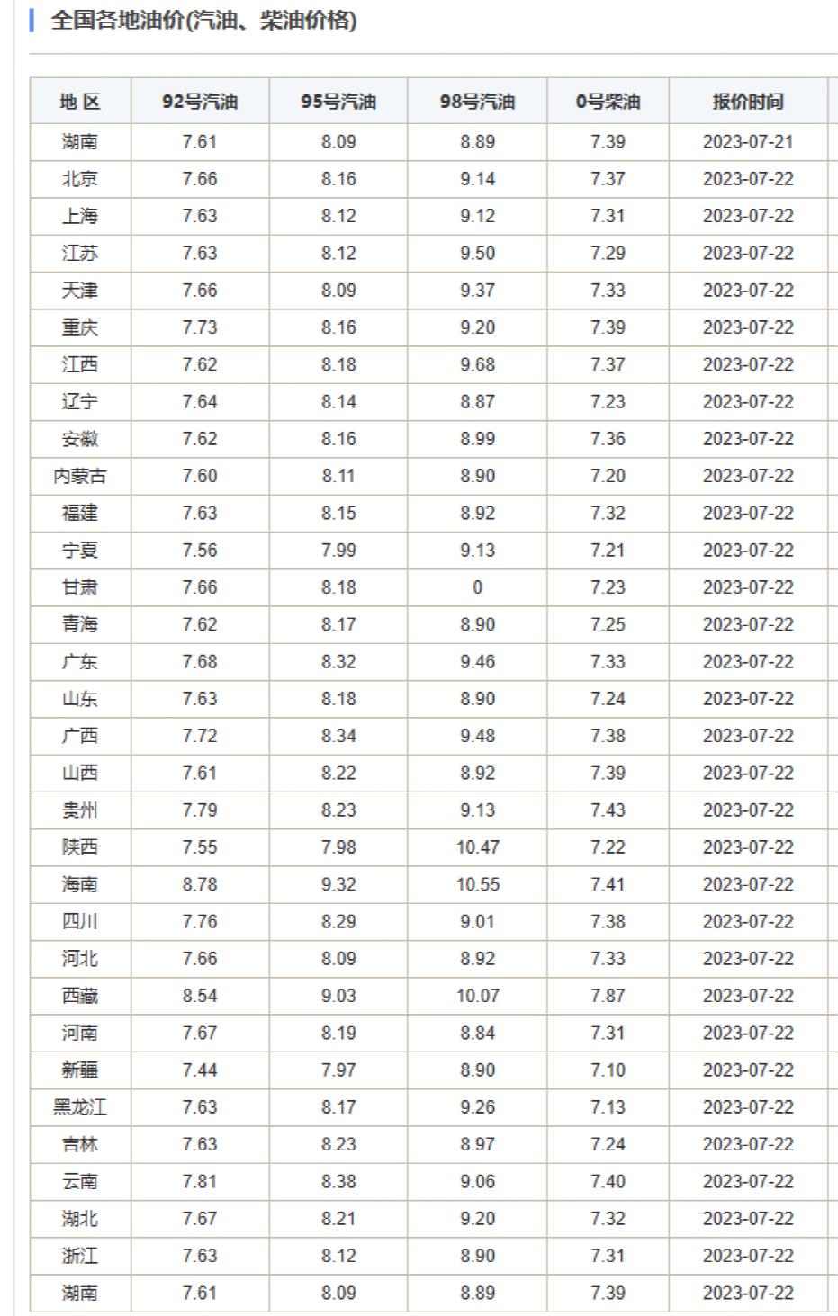 就目前油价来看,国内各省份92号汽油价格普遍在7.44-7.81元/升(西藏、海南除外),95号汽油则普遍在8元/升以上,仅宁夏、陕西、新疆还勉强保持在8元线下。在此次涨价过后,国内95号汽油将全面进入“8元时代”。