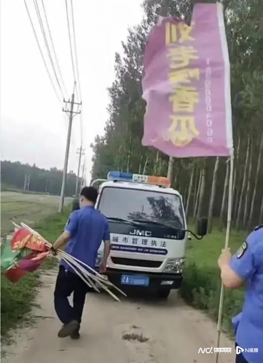据媒体报道,7月19日9时许,沈阳市新民市的一队城管队员专程开车跑到乡间小路旁的瓜田,以“种地不能打广告”为由,把地里插着的彩旗和条幅拔掉。瓜农刘先生很犯愁,也很委屈:“进城卖瓜也不行,田间打个广告也不行,我这数万斤香瓜,可能会烂在地里。”对此,当地行政执法局回应称,发现有瓜农私自在公园附近路旁违规设广告,沟通拆除过程中发生言语冲突,已取得瓜农谅解。
