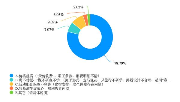 调研显示,78.79%的受访者认为研学游价格虚高,有些消费明细不清,此外货不对板,游而不学也是比较突出的问题。