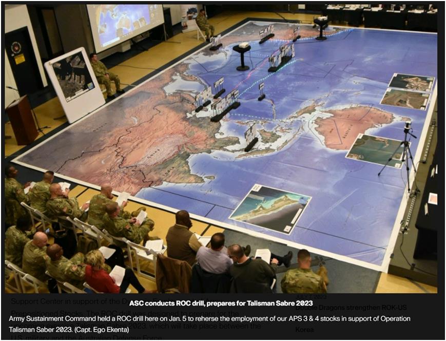 众所周知,各国演习通常分为电脑/纸上兵推和实兵演练两大类,很多情况下,关键的作战想定是在纸上兵推阶段完成,而实兵演练则偏重具体的人员日常操作。目前尚不清楚美国陆军保障司令部今年年初这次预演的具体情况。如果大胆猜想,“护身军刀2023”的纸上兵推假想的其实是“美军在东亚地区爆发的大规模冲突”,而美国陆军保障司令部预演的是测试在此背景下的美军物资供应能力,那么就更加让人细思极恐了……