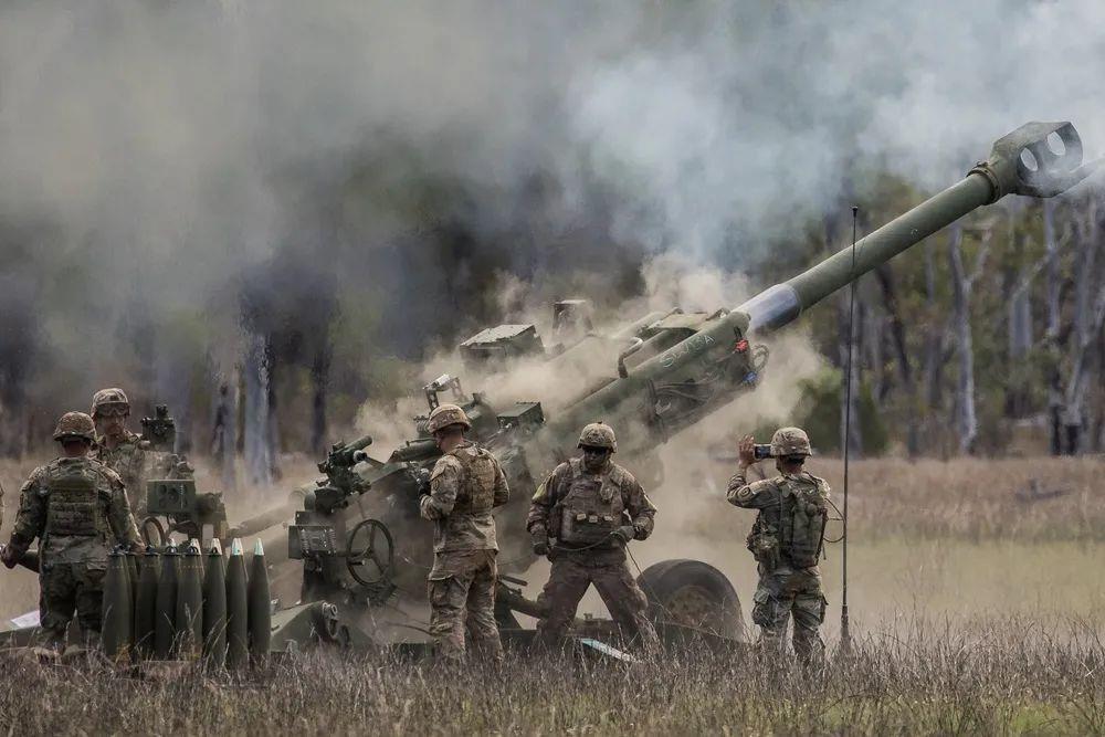 美军在“护身军刀2023”演习中发射M777榴弹炮