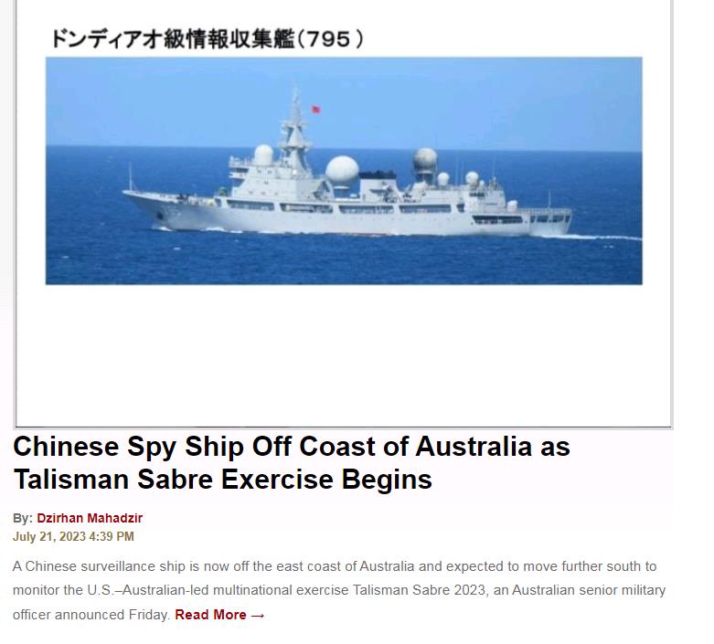 当然,解放军也从来没有放松对美军这类动作的警惕。正如澳大利亚方面所言,“护身军刀2023”演习开始之前,一艘中国舰艇就出现在周边海域。美国海军学会网站则称,自2017年以来,每当澳大利亚举行“护身军刀”系列演习时,解放军舰艇都会伴随监视。
