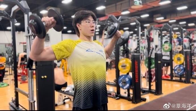 最大的变化来自身体——去年一个冬训,覃海洋着重强化了自己的基础力量,身体维度宽了一圈。