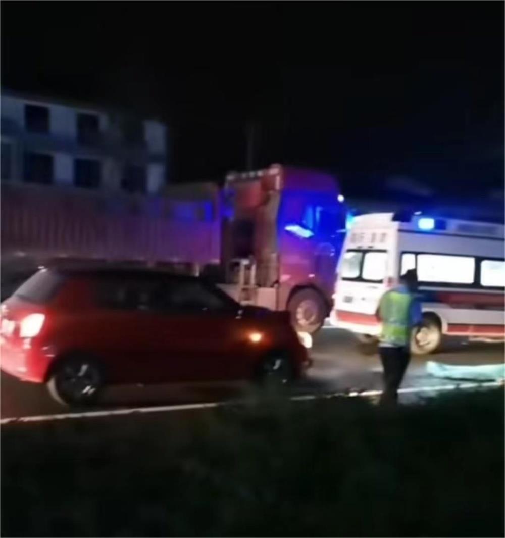 视频显示,一辆红色的轿车打着双闪停在路边,不远处,有人躺在路面,覆盖着蓝色布料。交警和医护人员陆续抵达现场。
