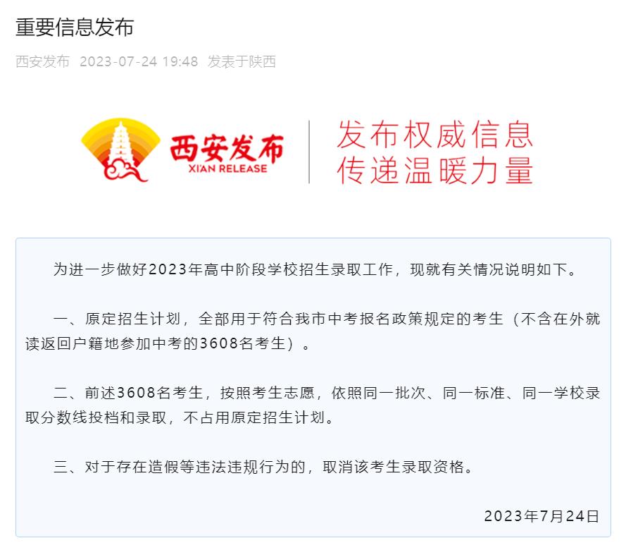 为进一步做好2023年高中阶段学校招生录取工作,现就有关情况说明如下。