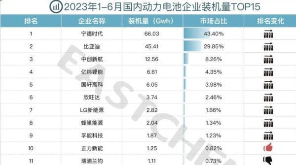 不过,在国内方面,中国汽车产业创新联盟最新数据显示,今年1—6月,宁德时代的动力电池的国内市场装车量为66.03GWH,市场占比为43.4%,同期下降了4.27个百分点,而比亚迪电池装车量为45.41 GWH,市场占比为29.85%。
