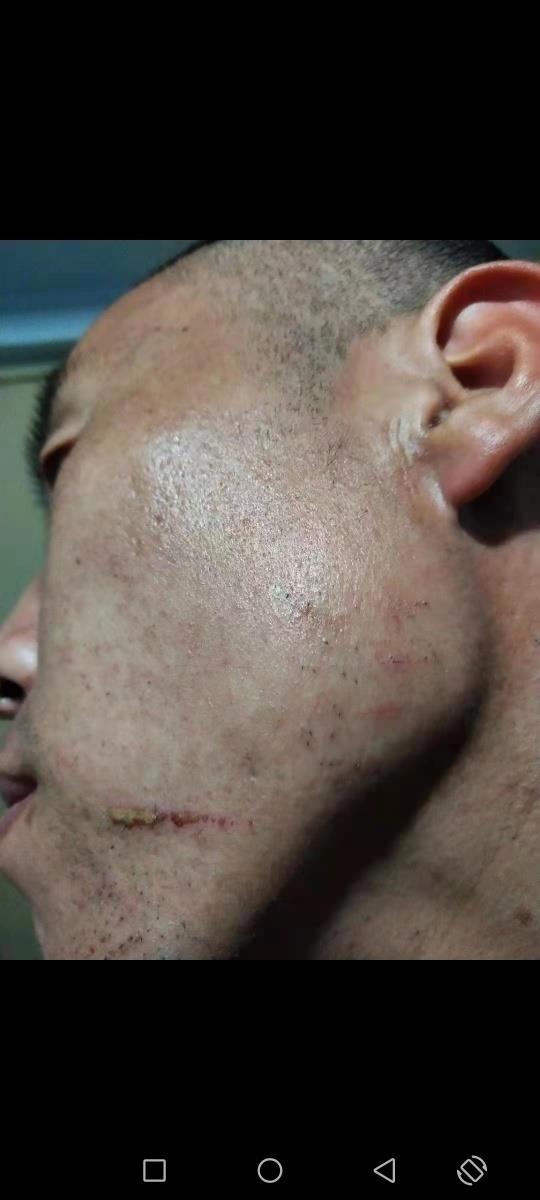 武先生脸部受伤。