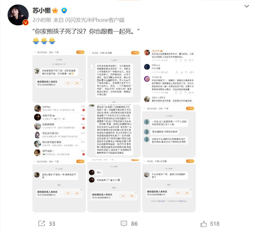 ▲苏小懒自曝遭遇网暴。 图片来源/微博截屏