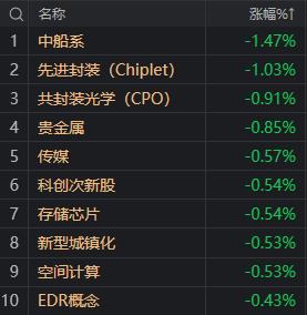 消费股盘中活跃,零售股领涨,中兴商业、国芳集团涨停,贵州茅台涨超3%。房地产板块震荡走高,荣盛发展、城建发展涨停。汽车产业链个股探底回升,海马汽车、赛力斯涨停等涨停。下跌方面,半导体板块陷入调整,Chiplet方向领跌,易天股份、甬矽电子跌超5%。