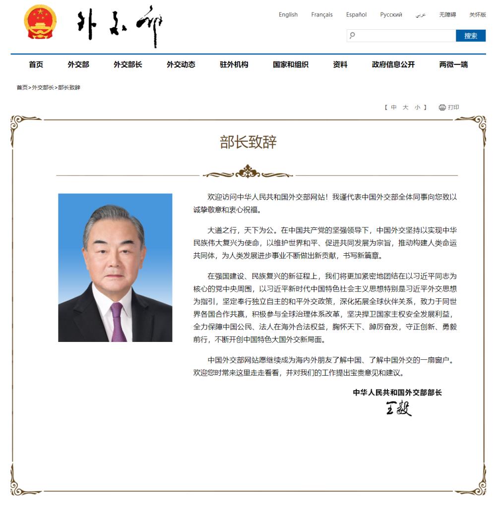 欢迎访问中华人民共和国外交部网站!我谨代表中国外交部全体同事向您致以诚挚敬意和衷心祝福。
