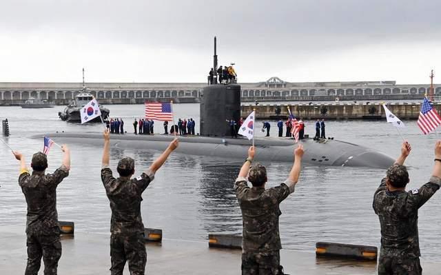 美国“洛杉矶级”核潜艇“安纳波利斯”号本月24日停靠韩国济州海军基地。