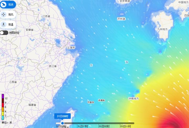 后天(8月1日)早晨至上午,“卡努”将移入东海,并逐渐向浙江沿海靠近,届时近岸海域将有4.0-5.0米的巨浪,近海海域将有8.0-10.0米的狂浪到狂涛,海浪预警级将到达橙色。