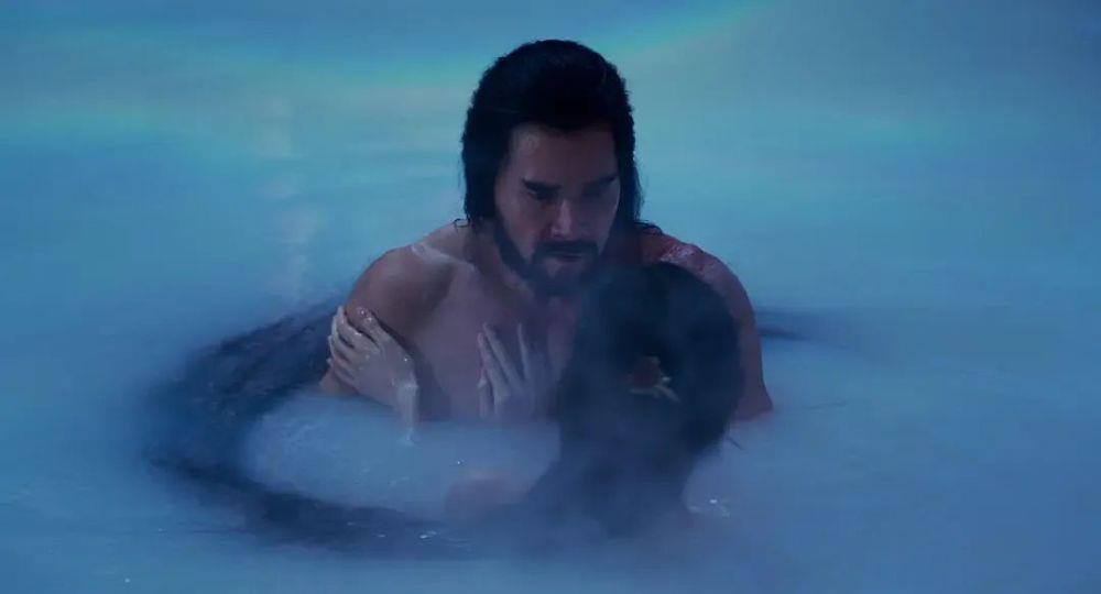 纣王双臂带动全身,化为迫切的鼓点,脸上写满上位者的刚强,与欲望未被满足的空虚、暴烈和渴望,配合着妲己的柔,共同酝酿成空气中漂浮着的不可言的情色。
