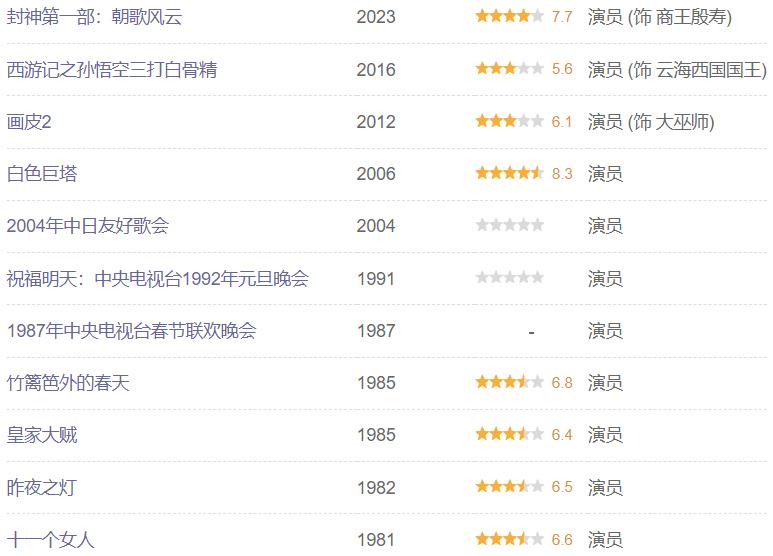 费翔演员作品不多,满打满算也就8部。