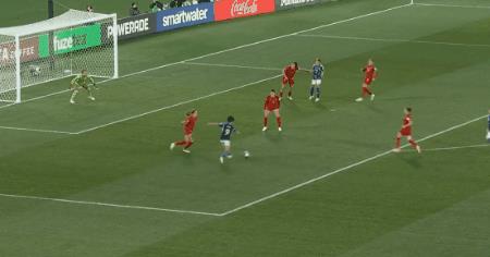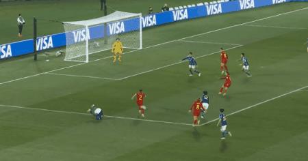 第40分钟,帕雷德斯后场传球失误,日本女足三传两递,把球送到前场,植木理子精准直塞,宫泽日向单刀抽射得手,日本女足3-0领先。