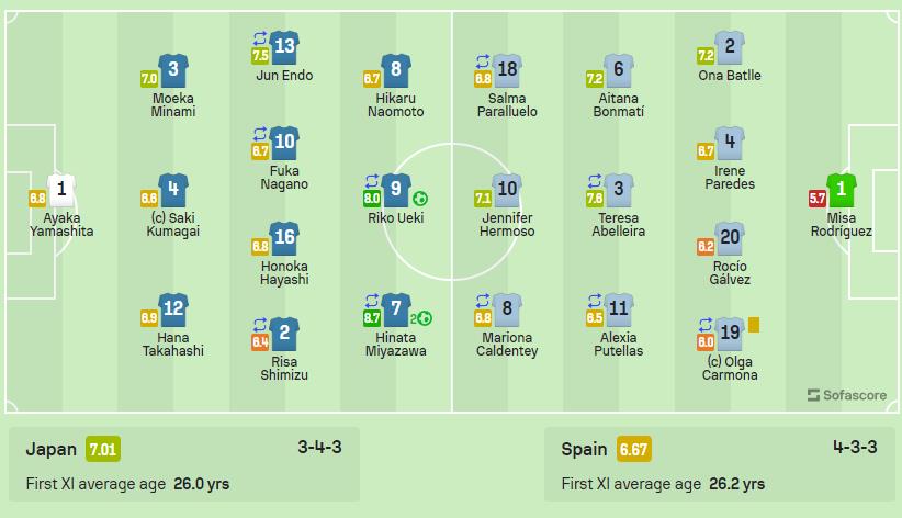 前锋:8-马里奥娜·卡尔登泰(62’15-埃娃·纳瓦罗)、10-珍妮弗·埃尔莫索、18-萨尔玛·帕拉尔卢埃洛(82’9-埃丝特·冈萨雷斯)